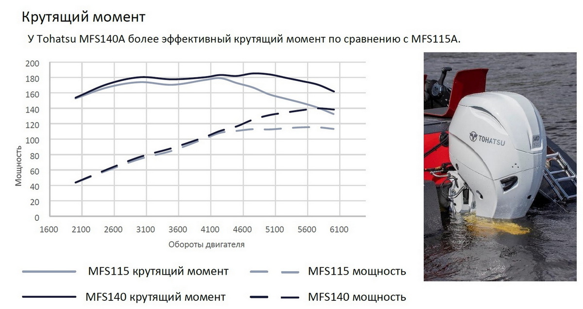 - При установки на более легких лодках MFS140 покажет себя на том же уровне, что и 150 сильный двигатель.